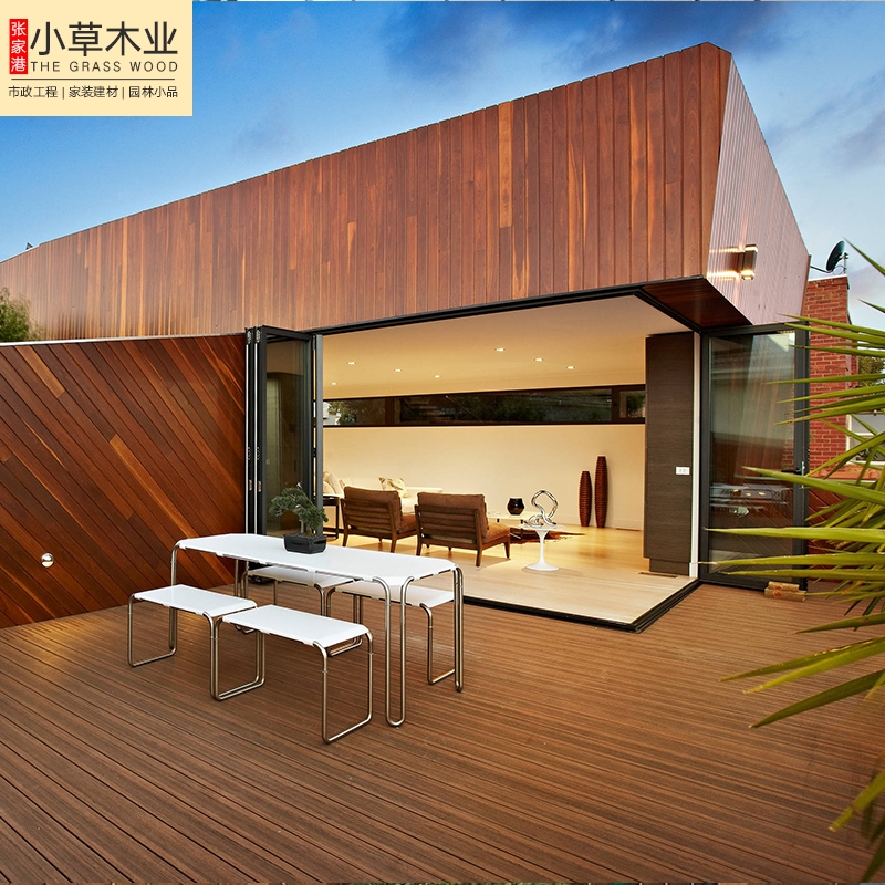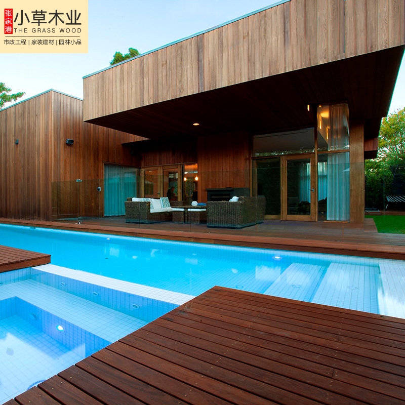 室內(nèi)室外防腐木家裝。外墻貼面,外墻弧形掛板,室內(nèi)吊頂扣板,這些位置的架子建議烘干板材,如:外墻貼面可用龍鳳檀或者是巴勞木來做,不建議印尼菠蘿格,印尼菠蘿格有掉色,不適宜外墻貼面。