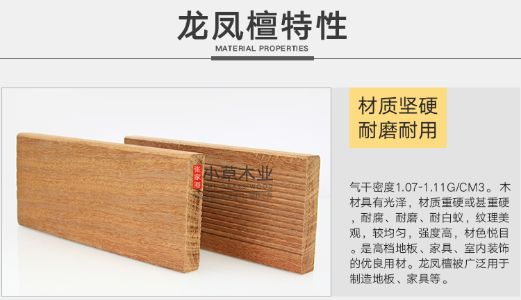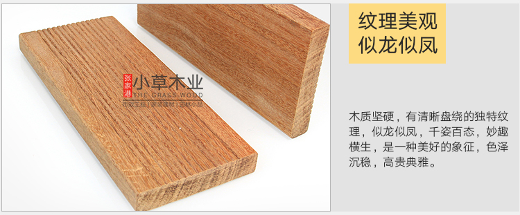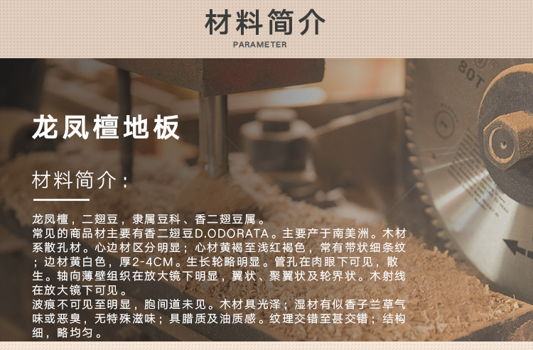 龍鳳檀,二翅豆,隸屬豆科、香二翅豆屬。常見的商品材主要有香二翅豆D.odorata。主要產(chǎn)于南美洲。木材系散孔材。心邊材區(qū)分明顯;心材黃褐至淺紅褐色,常有帶狀細(xì)條紋;邊材黃白色,厚2-4cm。生長輪略明顯。管孔在肉眼下可見,散生。軸向薄壁組織在放大鏡下明顯,翼狀、聚翼狀及輪界狀。木射線在放大鏡下可見,